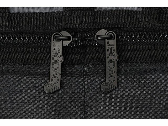 Органайзер District для электроники Voyager с множеством кармашков и отделений позволяет рассортировать девайсы, провода и другие аксессуары для техники удобным вам способом. Органайзер имеет 6 сетчатых кармашков, из них три на молнии, с бегунками, украшенными логотипом бренда. Кроме того, он имеет держатели для проводов и открытые карманы на резинке. Обложка закрывается на резинку, которая зацепляется за круглую пуговицу, и в сложенном виде органайзер весьма компактен, несмотря на свою вместительность. Благодаря форме его можно набить достаточно туго, ведь растягивающаяся резинка на обложке позволяет варьировать степень наполненности органайзера.
