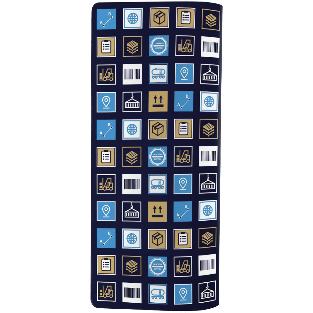 Прочный непромокаемый материал аксессуара сохранит важные документы сотрудника в деловой поездке, а минималистичный дизайн создаст особую эстетику. В каждой части общего рисунка изображены главные символы логистики.