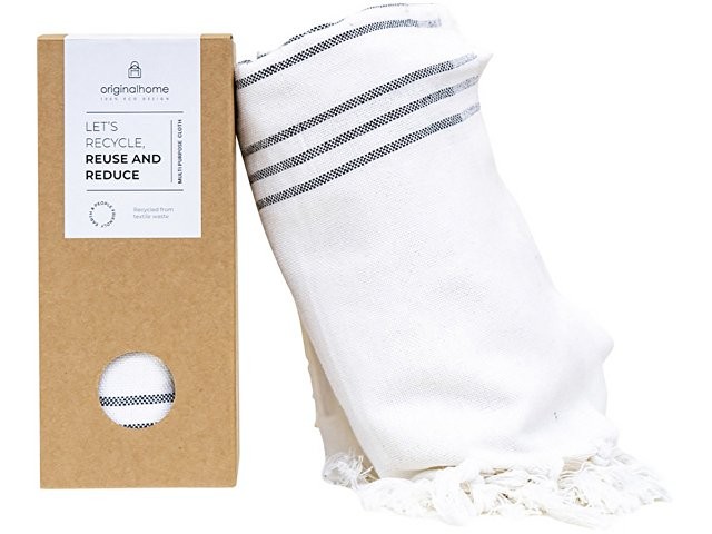 Этот универсальное изделие — достаточно плотное, чтобы использовать его как плед или полотенце, тонкое настолько, чтобы носить как шарф, и компактное, чтобы брать с собой куда угодно. Сделанное из 100% переработанных материалов текстильной отрасли в Бангладеше и сотканное на традиционной ручной ткацкой раме, оно способствует развитию женского предпринимательства. Идеальный социальный подарок, который вносит вклад как в устойчивое, так и в социально ответственное дело. Размер: 85 × 175 см. Состав: 70% переработанного хлопка, 25% переработанного полиэстера, 5% других переработанных волокон.