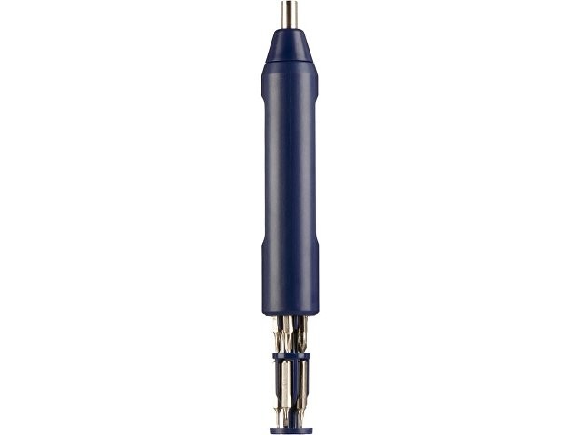 Отвертка-ручка «Drill» это универсальная отвертка с сменными битами. Благодаря форме корпуса идеально лежит в руке. Отвертка легкая и занимает мало места. Выдвижной механический контейнер бит позволяет хранить в себе весь набор из 10 сменных бит. Ручка инструмента изготовлена из пластика, биты – из нержавеющей стали.