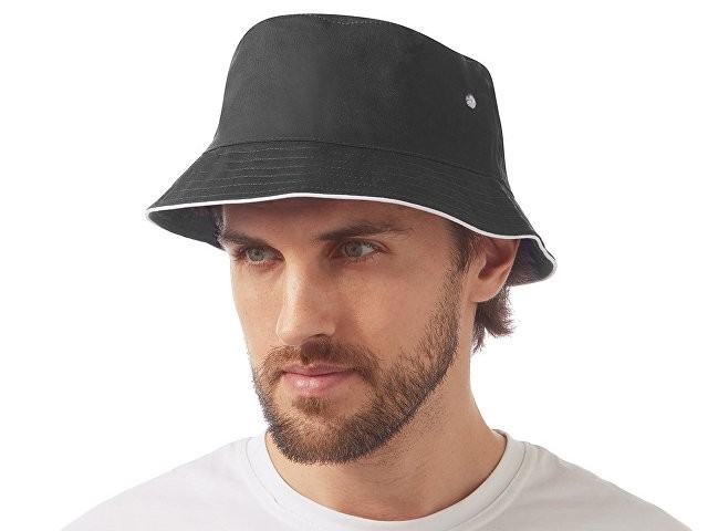 Панама из хлопкового твила с контрастным кантом и контрастными вентиляционными отверстиями. Панама подойдет как мужчинам, так и женщинам.