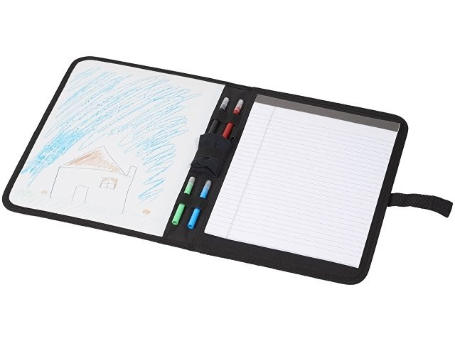 Расчет нанесенияПапка Veela A4. Папка A4 с текстильной застежкой. Включает блокнот с 30 страницами линованной бумаги и доску. В комплект входят маркеры и салфетки. Полиэстер 600D.