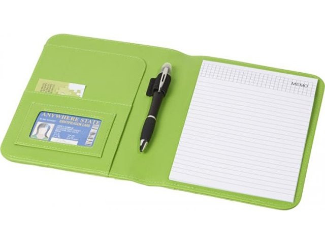 Расчет нанесенияПапка с держателем для ручки, карманами для документов и блокнотом А5 с 20 страницами линованной бумаги. Ручка и принадлежности не включены.