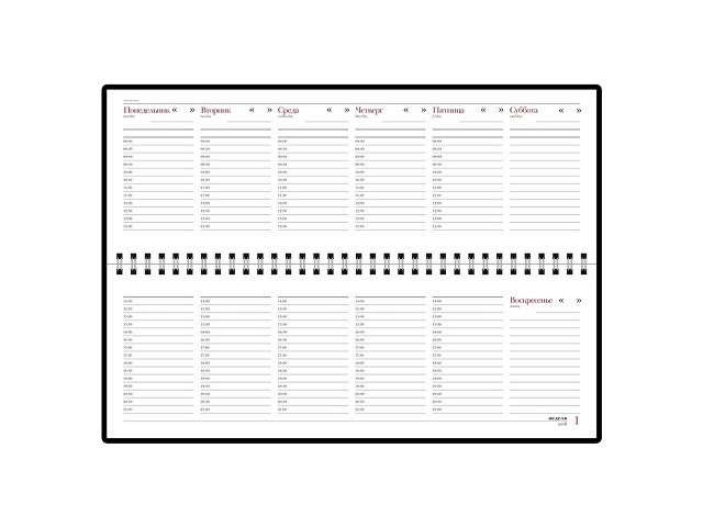 Недатированный планинг размером 305*130 мм состоит из 128 страниц с креплением на металлическом гребне. Используется высококачественная белая бумага плотностью 70 г/км. Полезная справочная информация на 14 страницах пригодится в бизнесе и повседневной жизни (телефонные коды России и мира, праздники, единицы измерения, таблицы размеров, часовых поясов и т.д.)