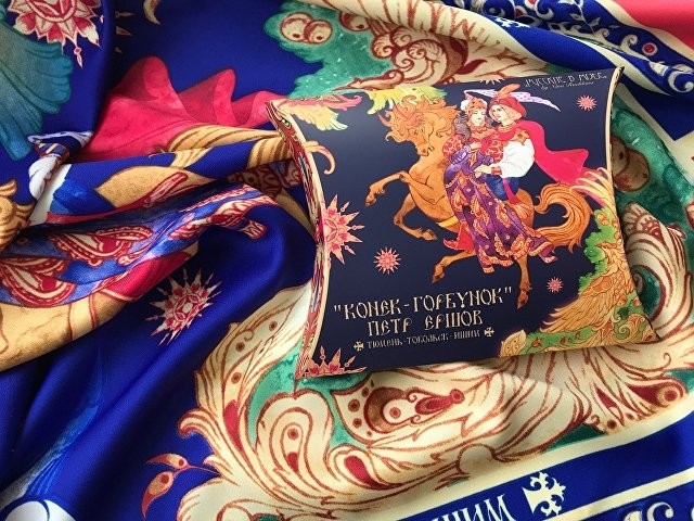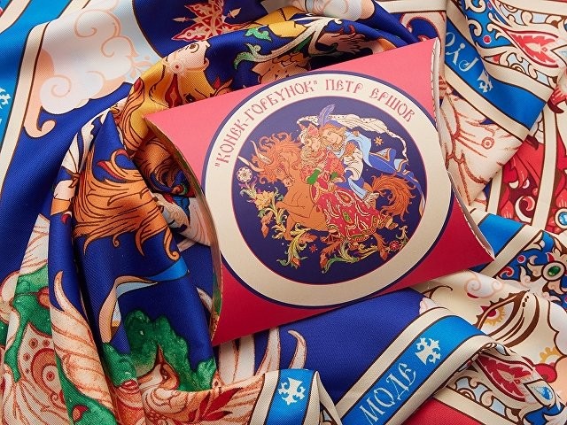 За горами, за лесами, За широкими морями, Не на небе - на земле Жил старик в одном селе… Известные каждому напевные строки сказки «Конек-Горбунок» неизменно возвращают нас в волшебный мир детства. Их автор – Петр Ершов – родился в 1815 году в маленьком селе Безруково Ишимского уезда Тобольской губернии, и, будучи еще совсем молодым, яркой звездой взошел на литературном небосклоне России. Прочитав сказку юного дарования, сам великий Александр Сергеевич Пушкин сказал: «Этот род сочинений я могу теперь оставить» - и Петр Ершов был принят в круг петербургских писателей.В этом году сказке из золотого фонда русской литературы, переведенной на все языки мира, исполняется 185 лет. Ее яркие краски мы перенесли на шелк и создали платок «Конек-Горбунок». Благодаря тонкой работе дизайнера, со страниц книги, как живые, сошли герои любимой с детства истории: Иван, прекрасная Царь-девица и волшебный Конек-Горбунок. А в роскошных орнаментах сплелись легендарное перо Жар-птицы, Красное Солнышко и Месяц… Пусть этот платок принесет в Вашу жизнь немного чуда и наполнит ее вдохновением! Над дизайном работали: Мила Лосенко, Нина Ручкина. Советы по уходу: -Наши платки сделаны с душой и нуждаются в ответной душевной заботе и внимании. -Они практически не мнутся, очень приятные на ощупь, нежные и мягкие. Любят бывать на людях, посещать светские мероприятия, не выносят одиночества. -Всегда готовы к экспериментам и смелым сочетаниям. Прослужат верой и правдой долгие годы, никогда не выйдут из моды и всегда будут уместны и кстати. -Ручная стирка 40 градусов.