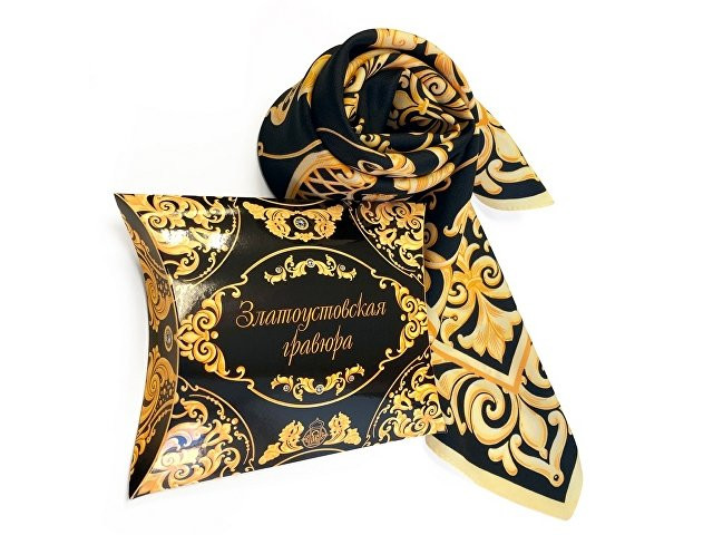 Дамы и господа, вы держите в руках платок «Златоустовская гравюра», дизайн которого сделан совместно с авторами художественных мастерских «Лик». Свыше 190 лет развивается и совершенствуется редкое искусство - Златоустовская гравюра на стали. Гравюра на стали - это поэма в металле. Художники, используя его чудесные свойства и применяя специальную обработку, придают стали различные цвета и создают уникальные изделия, прославляющие Россию на весь мир. Платок «Златоуствоская гравюра» от бренда «Русские в моде» - это роскошь, изящество и характер, оригинальный аксессуар и настроение праздника, который всегда с Вами. Над дизайном работали художники: Нина Ручкина, Ольга Балака.