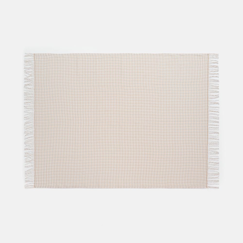 Графичный узор «гусиная лапка» (или «pied-de-poule») превращает изделие в изысканный интерьерный акцент, а бахрома добавляет ему элегантности и завершенности. Это воплощение безупречного вкуса и дань вневременной классике.