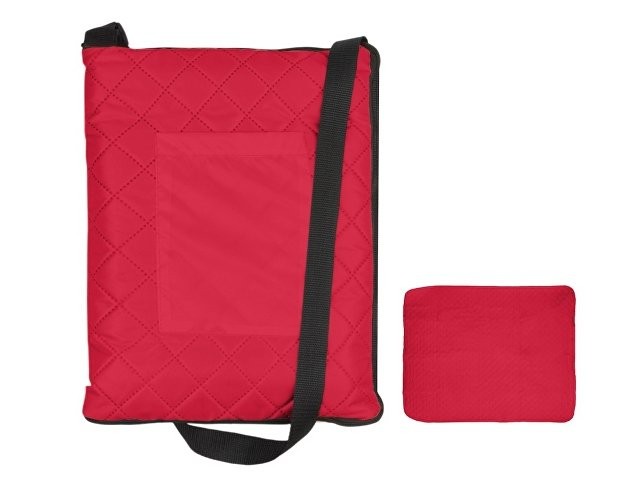 Расчет нанесенияДвухсторонний плед с водоотталкивающим покрытием с одной стороны и мягким флисом с другой. Складывается в сумку на плечо и фиксируется с помощью молнии. В собранном виде имеет регулируемый по длине ремень для переноски и наружный карман для мелочей.