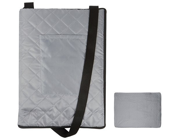 Расчет нанесенияДвухсторонний плед с водоотталкивающим покрытием с одной стороны и мягким флисом с другой. Складывается в сумку на плечо и фиксируется с помощью молнии. В собранном виде имеет регулируемый по длине ремень для переноски и наружный карман для мелочей.