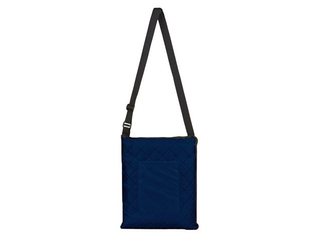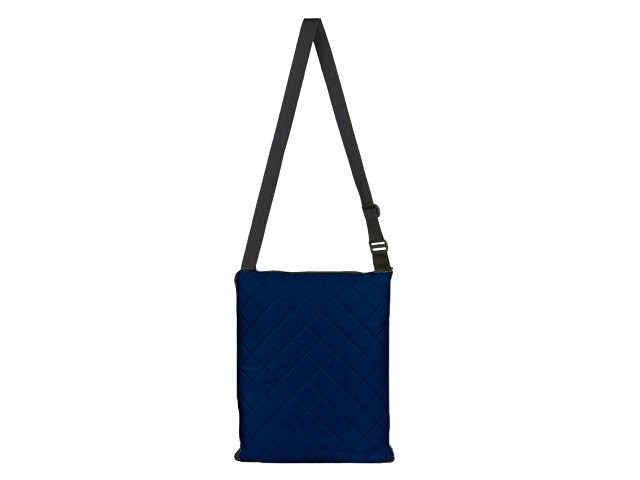 Двухсторонний плед с водоотталкивающим покрытием с одной стороны и мягким флисом с другой. Складывается в сумку на плечо и фиксируется с помощью молнии. В собранном виде имеет регулируемый по длине ремень для переноски и наружный карман для мелочей.