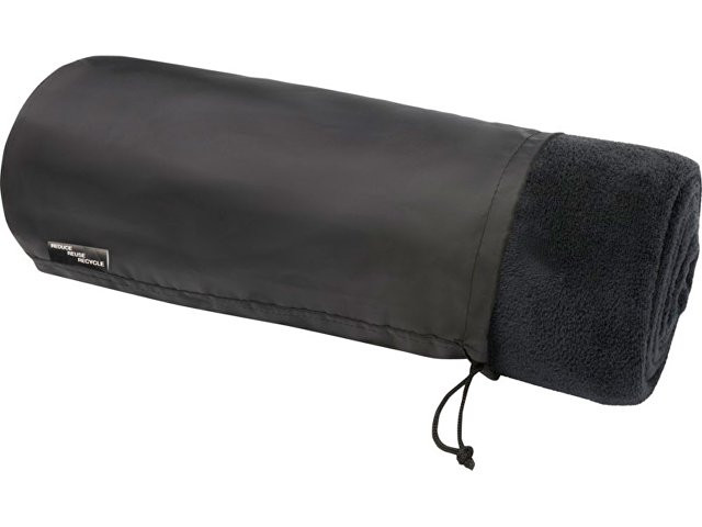 Ультрамягкий плед из синтетического трикотажного полотна из вторичного ПЭТ. 100% переработанный полиэстер, 240 g/m2. Поставляется с сумкой для переноски из вторичного ПЭТ 190T с застежкой на шнурке. Размер сумки d16 х 37 см. Упаковано в полиэтиленовый пакет из переработанного материала.