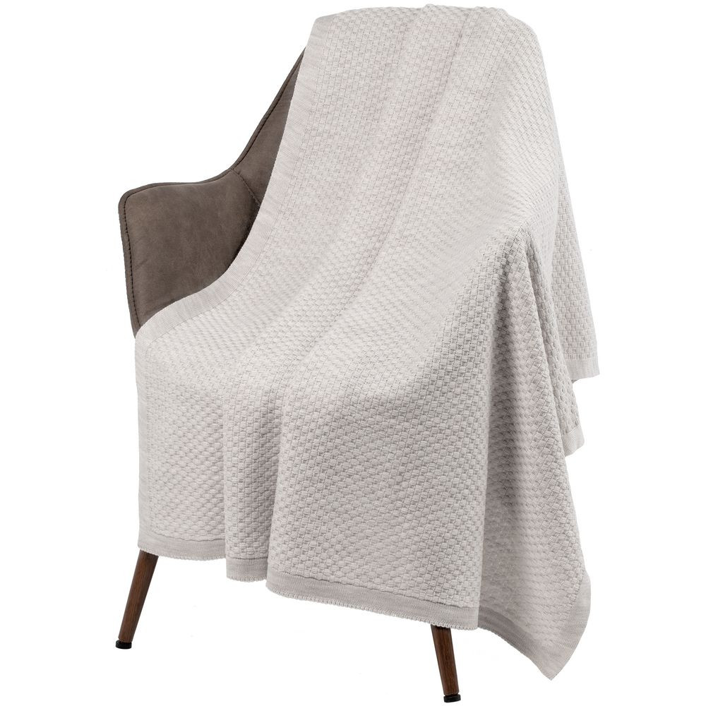 Однотонный плед рельефной вязки.Поставляется в пакете с липким краем.