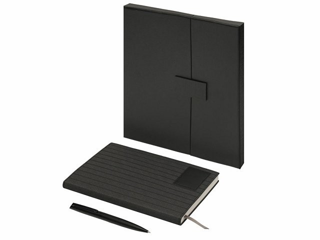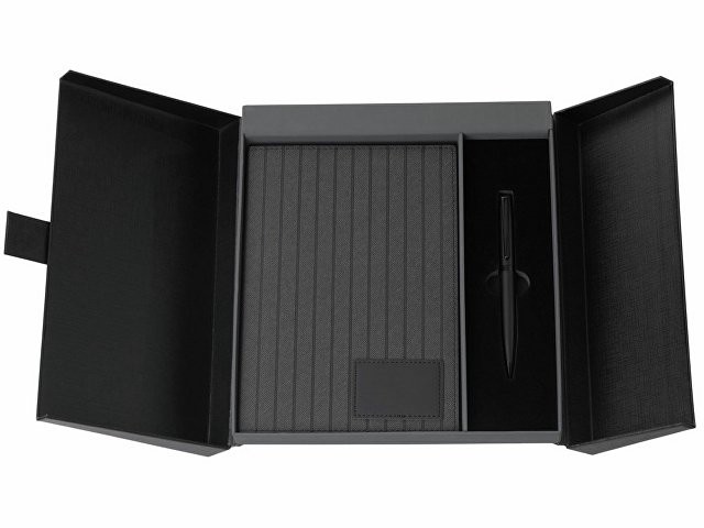 "Bradbury & Co" - это элегантный подарочный набор, упакованный в красивую коробку на магните. Внутри — блокнот в обложке из рифленой экокожи и металлическая шариковая ручка. Ручка гармонирует с блокнотом за счет рифленой нижней части, а блокнот имеет специальный патч для нанесения логотипа (который можно также нанести на более ровную поверхность на обороте блокнота) и ляссе-закладку для удобства. При гравировке на ручке вскрывается эффектный серебристый цвет. Внутри блокнота - 80 листов кремовой бумаги 80 г/м2 с FSC-сертификатом ответственного лесопользования. Стержень ручки заправлен синими немецкими чернилами Dokumental и швейцарским пишущим узлом Premec, что обеспечивает мягкость и плавность письма.