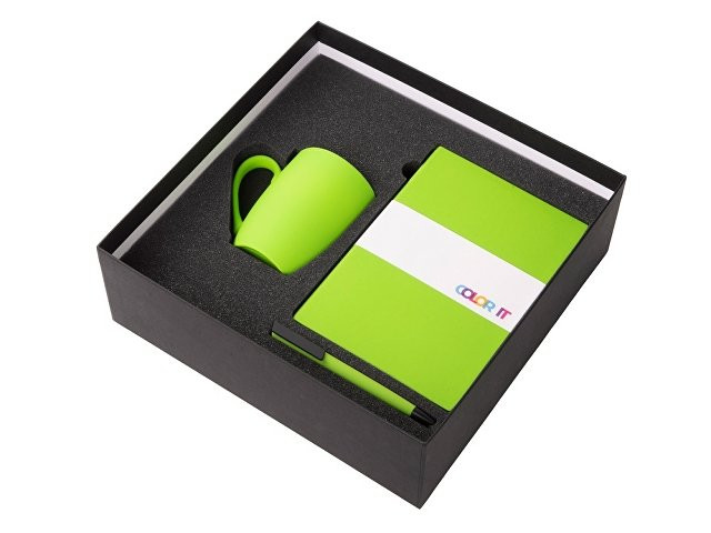 Color It — линейка, в которую входят хиты мерча в десяти самых популярных цветах. Еще никогда собрать сет под свой брендбук не было так просто. Широкая цветовая палитра серии позволяет создать идеальный набор в едином оттенке Pantone. Все товары имеют тактильно приятное покрытие софт-тач. Сет поставляется в коробке: мы продумали все, включая подарочную упаковку, за вас — осталось нанести лого! Фарфоровая кружка с удобной ручкой брендируется методом гравировки, поэтому нанесение будет долговечным и не сотрётся при мытье кружки. Бизнес-блокнот в гибкой обложке имеет ляссе в тон обложки и среза. Бумажный блок разлинован в линейку и выполнен из бумаги, полученной из древесины из специальных восполняемых лесных ресурсов, имеет сертификат FSC. Тонкое письмо ручки обеспечивается пишущим узлом с толщиной письма 0,5 мм с нажимным механизмом. Ручка имеет сменный стержень, поэтому такой мерч прослужит дольше обычной одноразовой ручки, долго напоминая о вас клиентам. - объём кружки: 300 мл; - блокнот А5 128 листов; - ручка с необычным слайдером; - подарочная упаковка из картона, оклеенного дизайнерской бумагой уже включена в набор.