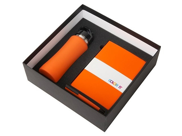 Color It — линейка, в которую входят хиты мерча в десяти самых популярных цветах. Еще никогда собрать сет под свой брендбук не было так просто. Широкая цветовая палитра серии позволяет создать идеальный набор в едином оттенке Pantone. Все товары имеют тактильно приятное покрытие софт-тач. Сет поставляется в коробке: мы продумали все, включая подарочную упаковку, за вас — осталось нанести лого! Спортивная бутылка для воды сделана из нержавеющей стали, а в пластиковой крышке предусмотрено специальное отверстие для питья, которое позволяет пить в движении. Бизнес-блокнот в твёрдой обложке имеет ляссе в тон обложки и среза. Бумажный блок разлинован в линейку и выполнен из бумаги, полученной из древесины из специальных восполняемых лесных ресурсов, имеет сертификат FSC. Тонкое письмо ручки обеспечивается пишущим узлом с толщиной письма 0,5 мм с нажимным механизмом. Ручка имеет сменный стержень, поэтому такой мерч прослужит дольше обычной одноразовой ручки, долго напоминая о вас клиентам. - объём бутылки: 600 мл; - блокнот А5 128 листов; - ручка с необычным слайдером; - подарочная упаковка из картона, оклеенного дизайнерской бумагой уже включена в набор.