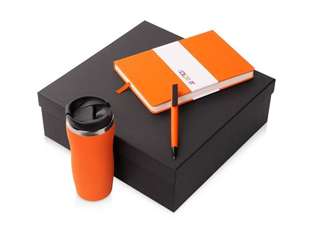 Color It — линейка, в которую входят хиты мерча в десяти самых популярных цветах. Еще никогда собрать сет под свой брендбук не было так просто. Широкая цветовая палитра серии позволяет создать идеальный набор в едином оттенке Pantone. Все товары имеют тактильно приятное покрытие софт-тач. Сет поставляется в коробке: мы продумали все, включая подарочную упаковку, за вас — осталось нанести лого! Термокружка оснащена плотно завинчивающейся крышкой, которая исключает проливание содержимого. Откидной клапан позволяет пить, не снимая крышку. Сохранение температуры осуществляется благодаря вакуумной изоляции и двойным стенкам. Бизнес-блокнот в твёрдой обложке с магнитным держателем для ручки имеет ляссе в тон обложки и среза. Бумажный блок разлинован в линейку и выполнен из бумаги, полученной из древесины из специальных восполняемых лесных ресурсов, имеет сертификат FSC. Тонкое письмо ручки обеспечивается пишущим узлом с толщиной письма 0,5 мм с нажимным механизмом. Ручка имеет сменный стержень, поэтому такой мерч прослужит дольше обычной одноразовой ручки, долго напоминая о вас клиентам. - объём термокружки: 350 мл; - блокнот А5 128 листов; - ручка с необычным слайдером; - подарочная упаковка из картона, оклеенного дизайнерской бумагой уже включена в набор.