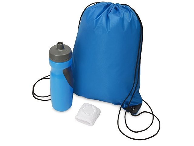 Яркий спортивный набор сподвигнет Вас к новым свершениям и поднимет настроение на самой изнуряющей тренировке! В него входят самые необходимые вещи для начинающего (и не только!) спортсмена: - удобная питьевая бутылка из безопасного пищевого пластика объёмом 709 мл; - напульсник из эластичного натурального хлопка; - рюкзак-мешок из полиэстера.