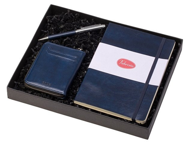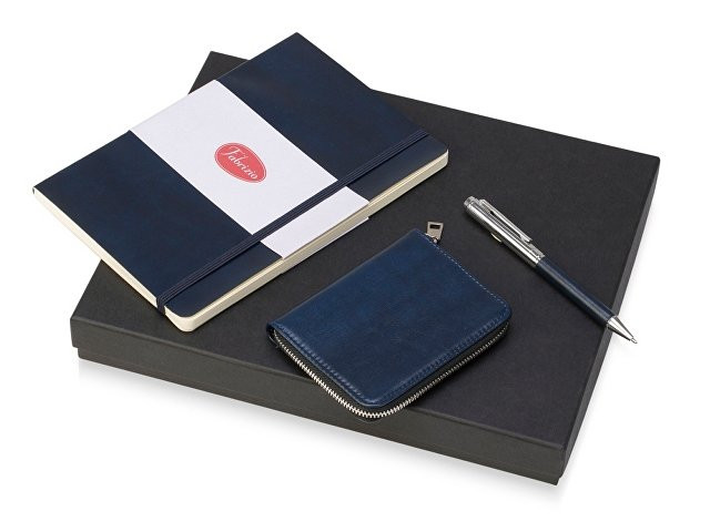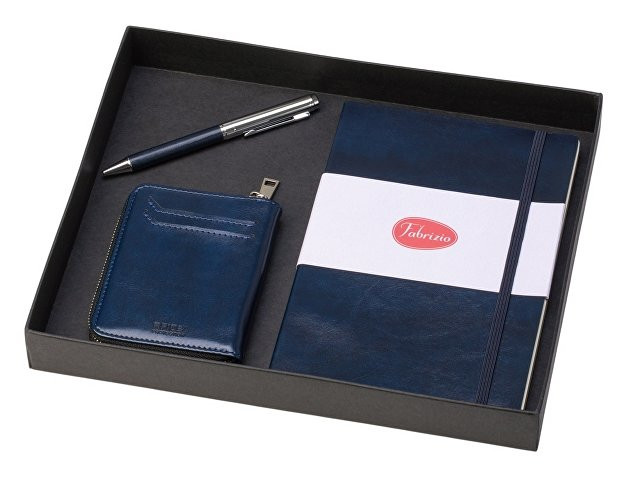 Стильный набор в едином дизайне - идеальный вариант для подарка офисным работникам. Гибкая обложка блокнота выполнена из искусственной кожи, блок блокнота - кремового цвета и оснащён резинкой в тон обложки. Металлическая шариковая ручка удобна в использовании благодаря вставке из полиуретана в цвет картхолдера и блокнота. Картхолдер имеет RFID защиту от считывания, - ваши карты будут в безопасности. Внутри картхолдера 6 отделений для карт, снаружи - 2 отделения. размер блокнота А5, 64 листов; ручка с нажимным механизмом; стильный офисный мерч.