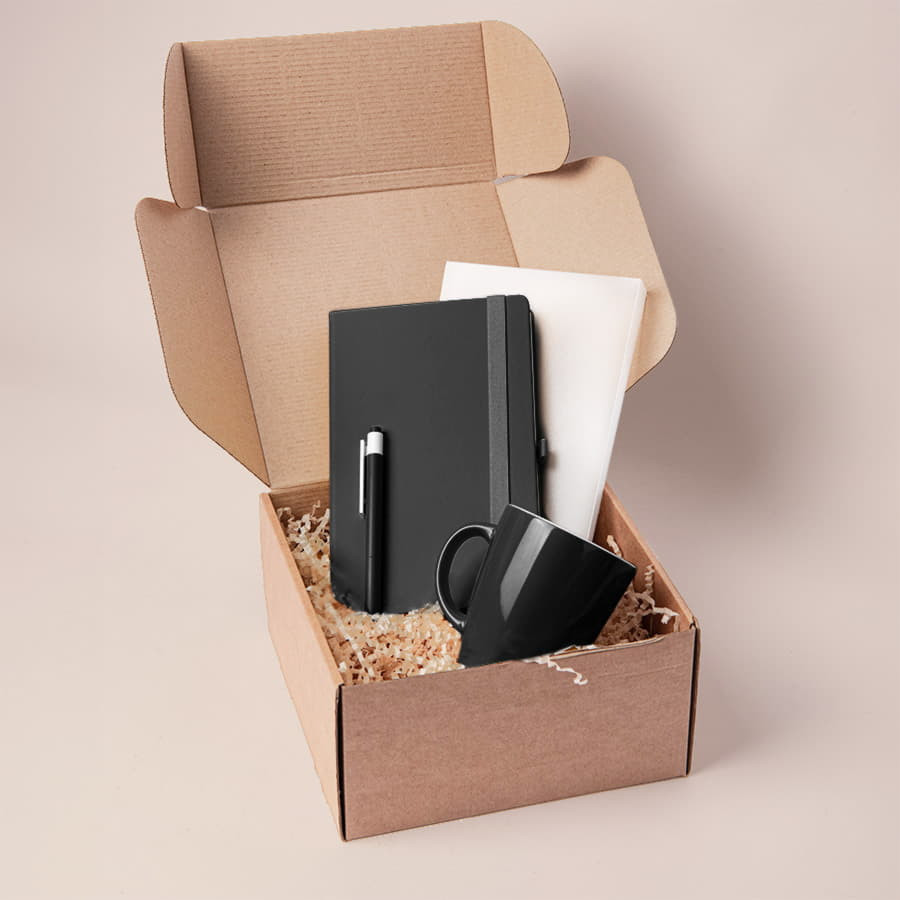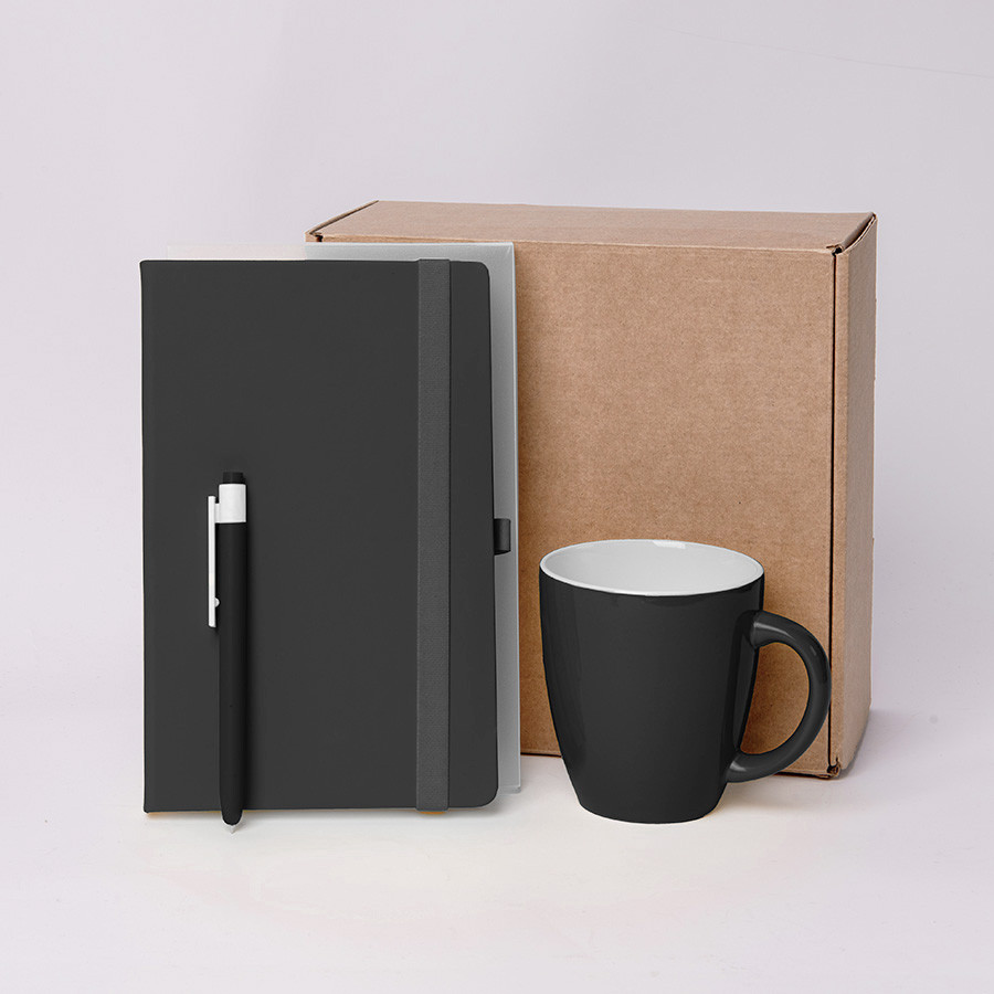 Подарочный набор JOY: блокнот, ручка, кружка, коробка, стружка; голубой, Черный