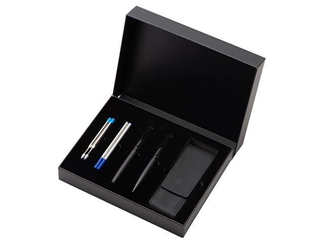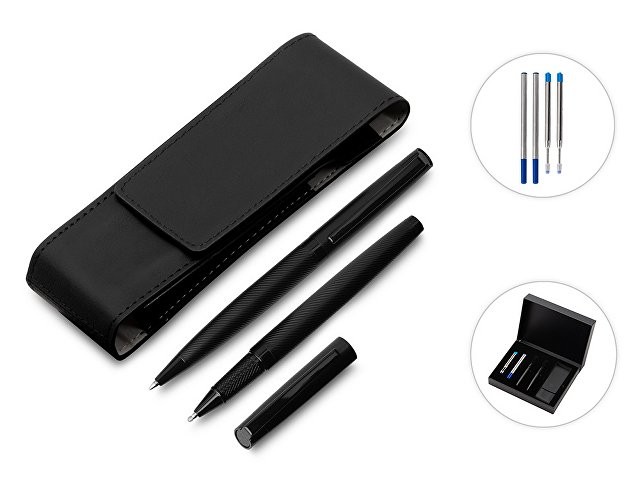 Если вы ищете премиальный и статусный подарок, то этот подарочный набор от бренда Lettertone для вас! Качество видно в каждом элементе. В набор входят шариковая ручка и роллер. Швейцарский пишущий узел Premec и немецкие чернила Dokumental обеспечивают мягкое и плавное письмо. Корпус каждой ручки имеет анодированный слой, благодаря которому гравировка получается с зеркальным эффектом.В набор входит также пенал для двух ручек, который также можно брендировать. - по 2 запасных стержня для каждой ручки в комплекте; - цвет чернил: синий; - набор упакован в подарочную коробку.