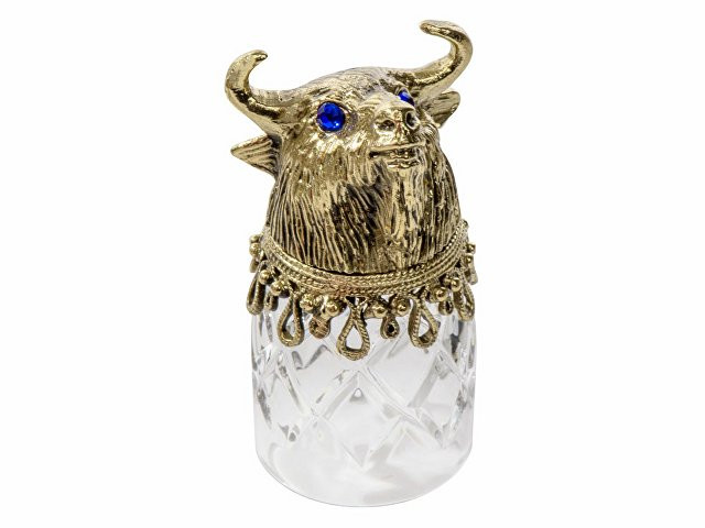 Футляр из эко-кожи, внутренняя отделка натуральная кожа рыжего цвета. Рисунок нанесен путем термообработки. В набор входит шесть стопок по 30 мл. Хрусталь, литьё.