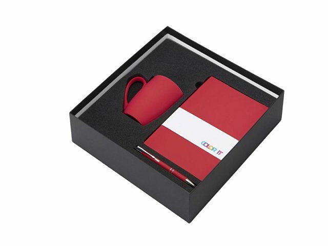 Color It — линейка, в которую входят хиты мерча в десяти самых популярных цветах. Еще никогда собрать сет под свой брендбук не было так просто. Широкая цветовая палитра серии позволяет создать идеальный набор в едином оттенке Pantone. Все товары имеют тактильно приятное покрытие софт-тач. Сет поставляется в коробке: мы продумали все, включая подарочную упаковку, за вас — осталось нанести лого! Фарфоровая кружка с удобной ручкой брендируется методом гравировки, поэтому нанесение будет долговечным и не сотрётся при мытье кружки. Бизнес-блокнот в твёрдой обложке имеет ляссе в тон обложки и среза. Бумажный блок разлинован в линейку и выполнен из бумаги, полученной из древесины из специальных восполняемых лесных ресурсов, имеет сертификат FSC. Шариковая ручка имеет сменный стержень, поэтому такой мерч прослужит дольше обычной одноразовой ручки, долго напоминая о вас клиентам. - объём кружки: 300 мл; - блокнот А5 128 листов; - ручка с необычным слайдером; - подарочная упаковка из картона, оклеенного дизайнерской бумагой уже включена в набор