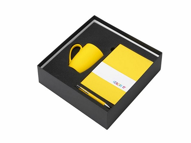 Подарочный набор с блокнотом С2, металлической ручкой и кружкой, желтый