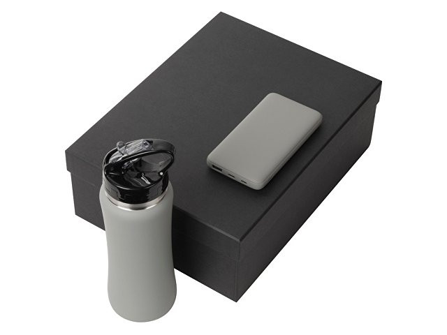 Подарочный набор с бутылкой для воды и повербанком С2, 10000 mAh, серый
