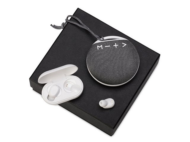Четкий звук беспроводных стереонаушников от бренда Hiper обеспечивают динамики чувствительностью 90 дБ. Наушники оснащены сенсорными кнопками, которые позволяют управлять музыкой и входящими звонками, не доставая телефон. Время зарядки наушников всего 1.5 часа, а воспроизведения - 3 часа. Портативная аудиоколонка обтянута специальной акустической тканью, улучшающей качество звучания. Воспроизведение музыки возможно как с USB носителя, так и с microSD карты; есть режим радио. • кейс наушников обеспечивает 2 зарядки • наушники на каждый день, колонка для дома и поездок • подарочная упаковка набора входит в комплект, - вам осталось только придумать принт!
