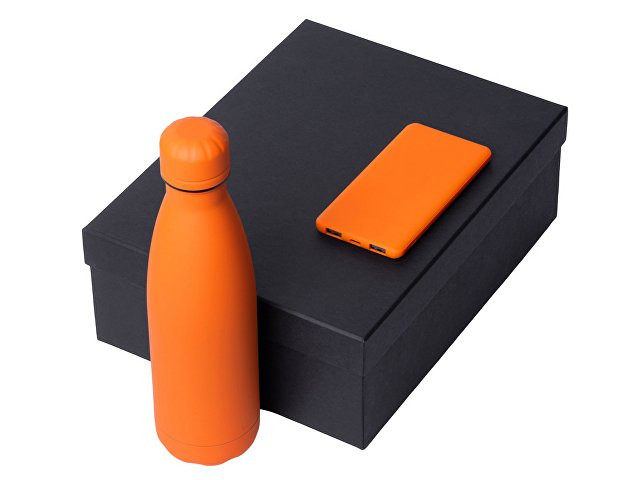 Подарочный набор с термобутылкой и повербанком С1, 5000 mAh, оранжевый