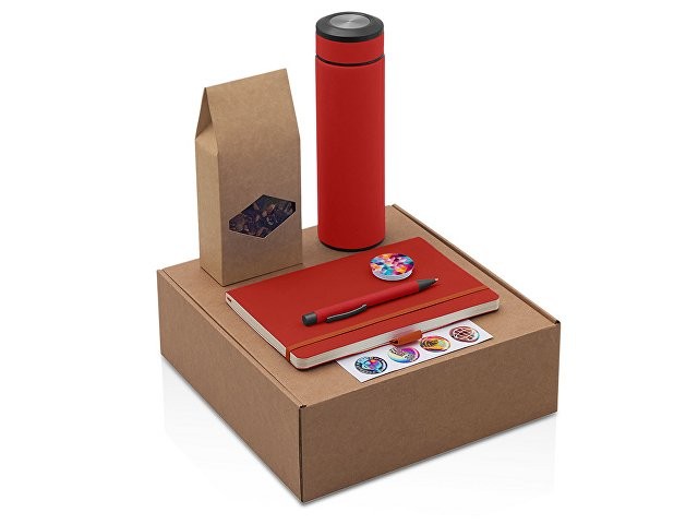 Подарочный набор с термосом, блокнотом, ручкой и чаем, красный