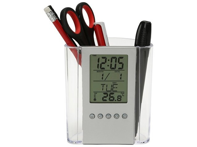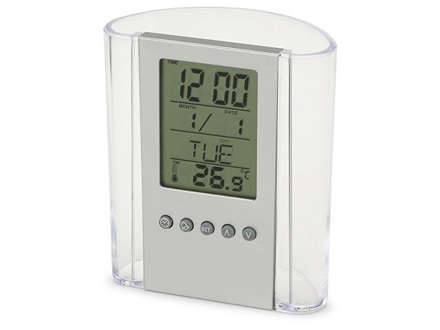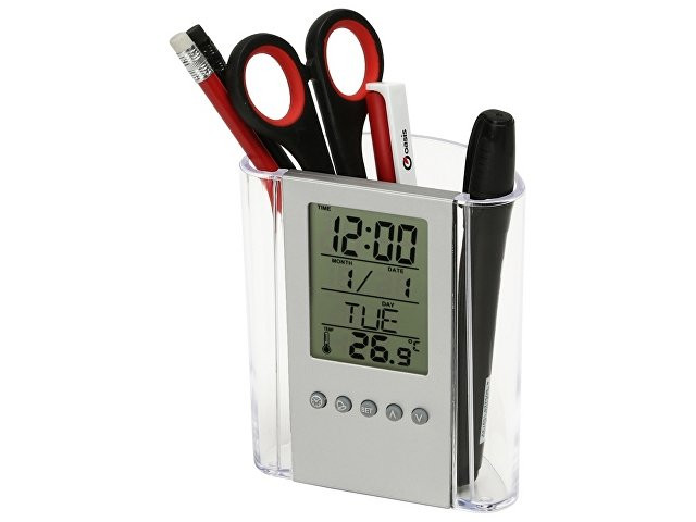 Расчет нанесенияЧрезвычайно практичный элемент Вашего рабочего стола подскажет время, температуру и даже дату, а ещё вместит в себя канцелярские принадлежности. Часы оснащены будильником. Полный порядок на столе плюс комфорт за приемлемую цену.
