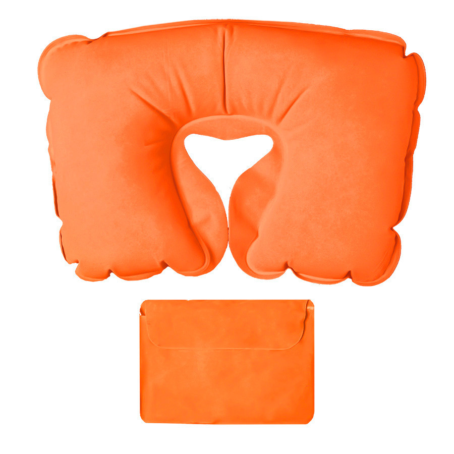 Подушка надувная дорожная WAY в футляре; желтый; 43,5х27,5 см; твил, Оранжевый
