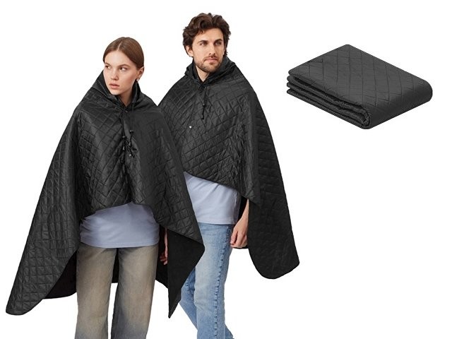 Плед 2-в-1 можно использовать как непромокаемое покрывало на землю и как согревающую и непромокаемую накидку во время пикника на природе. С одной стороны пледа водоотталкивающее покрытие, с другой - мягкий флис. На внутренней стороне из флиса приятно и тепло сидеть, а наружная сторона из полиэстера с водоотталкивающим покрытием не позволяет пледу намокнуть или сильно испачкаться. Для больше удобства использования пледа во время дождя в комплекте идет капюшон, который фиксируется с помощью " липучки". Накинув плед на плечи, застегните его на кнопки вверху и наденьте капюшон. Вы не промокните во время неожиданного дождя! В комплекте идет мешок для хранения, который можно использовать для нанесения вашего логотипа.