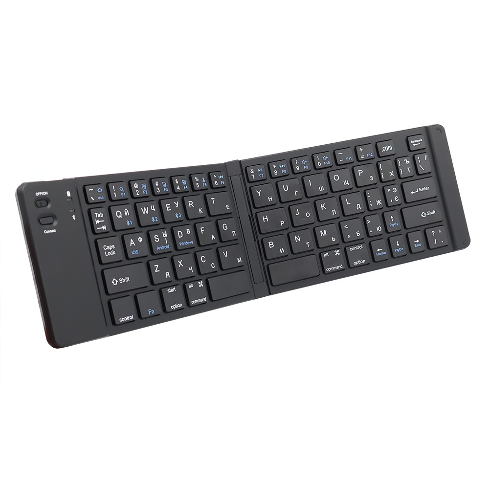 Портативная раскладная клавиатура Token удобный девайс в дороге и на работе. Быстрое подключение, компактный размер - помощник при работе с мобильным телефоном и планшетом. Встроенный аккумулятор, обеспечивающий продолжительность работы в 3-4 часа. Клавиатура маркирована русским языком. Для подключения мобильного телефона (также и для других устройств) необходимо активировать Bluetooth в телефоне и клавиатуре. В клавиатуре для этого нужно на верхней части левой панели перевести кнопку в режим ON и нажать и удерживать соседнюю кнопку Connect для активации режима BT - мигнет синий индикатор. В мобильном телефоне в окружении отобразится устройство "BТ5.2 Keyboard" - принять подключение устройства. Автоматически произойдет подключение и синхронизация устройств. После этого можно пользоваться устройством ввода текста. Для раскладки на ENG/RUS необходимо зайти в настройки телефона (описание для Android): Настройки - Расширенные настройки - Язык и ввод - Клавиатура, мышь, трекпад - Физическая клавиатура - Выбор раскладки/Настроить раскладки и добавить английский и русский языки в панель, автоматически появится подсказка о переключении языков: одновременное нажатие на клавиши control+пробел или shift+пробел.