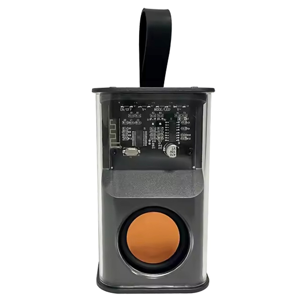 Прозрачная беспроводная колонка Jazzy в черном цвете с мощностью динамика 5 W сочетает стильный современный дизайн и высокое качество звука. Компактная и легкая, она обеспечивает удобство в использовании и подключается к устройствам через Bluetooth. Прозрачный корпус придает колонке уникальный внешний вид, делая ее ярким акцентом в интерьере или на выездных мероприятиях. В колонке предусмотрен слот для карты памяти MicroSD/TF, что позволяет легко воспроизводить ваши любимые треки напрямую с флеш-накопителя. Просто вставьте карту с музыкой — и наслаждайтесь звуком без подключения к другим устройствам!