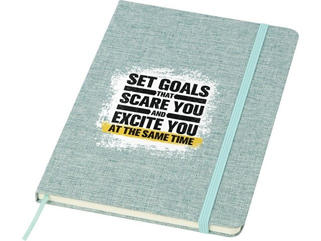 Расчет нанесенияБлокнот формата А5 в твердой обложке из переработанного хлопка, 80 листов бумаги плотностью 70 г/м² в линейку. Блокнот имеет эластичную застежку, ленту и закругленные углы. FSC certified paper. FSC Mix Credit P7.1 CU-COC-877277.