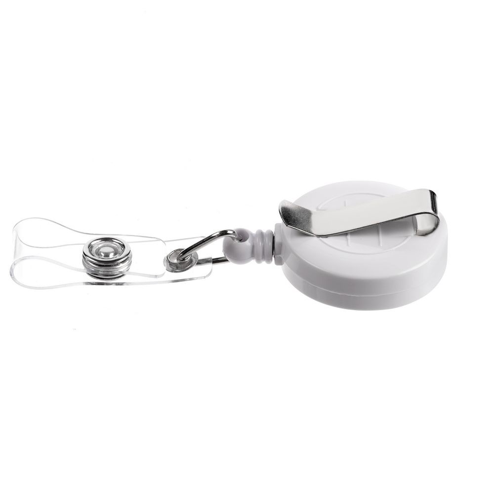 Ретрактор крепится к одежде, а с другой стороны можно поместить бейдж, визитку или магнитную карту. В корпусе спрятан сворачивающийся шнур, который позволяет при необходимости демонстрировать содержимое держателя, не снимая его.