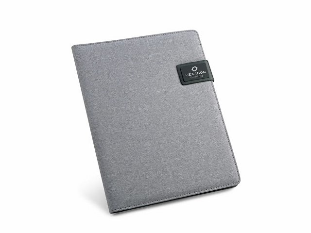 Папка A4 из искусственного льна и кожзаменителя. Имеет застежку на магните с пластинкой для персонализации. Внутри имеет блокнот из 20 листов в линейку, держатель для шариковой ручки (ручка не входит в комплект), карман для смартфона и держатели для кабелей или других принадлежностей (в комплект не входят). 233 x 310 x 18 мм | Пластина: 50 x 30 мм. Вид нанесения, рекомендуемый поставщиком: трансфер, гравировка.
