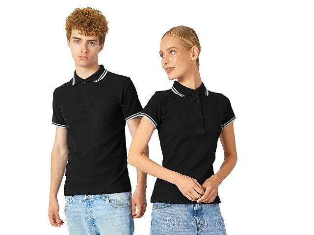 Рубашка-поло Erie с окантовкой. Воротник и манжеты резинка 1х1. Мужская модель с двумя пуговицами, женская - 4 пуговицы в тон изделия. Обшивка внутри воротника. Женская модель с разрезами по бокам. Женская модель приталена. Пике, 100% чесаный хлопок. Плотность 180 г/м2.