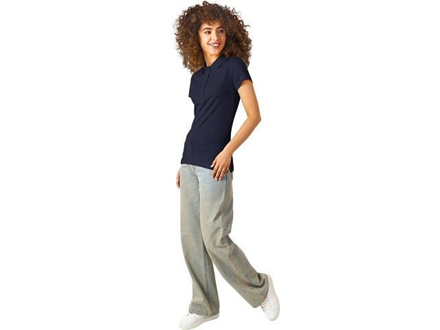 Женская рубашка-поло First. Воротник 1х1. Обшивка внутри воротника. Мужская и детская модели с 2 пуговицами, женская - с 4 пуговицами. Пуговицы с гравировкой в тон. Пике, 100% хлопок. 160 г/м2. Данная модель на 1 размер больше модели женского поло First.