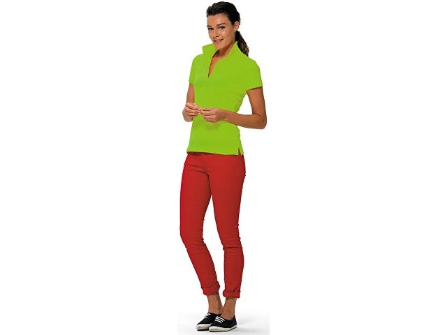 Женская рубашка-поло First. Воротник 1х1. Обшивка внутри воротника. Мужская и детская модели с 2 пуговицами, женская - с 4 пуговицами. Пуговицы с гравировкой в тон. Пике, 100% хлопок. 160 г/м2. Данная модель на 1 размер больше модели женского поло First.