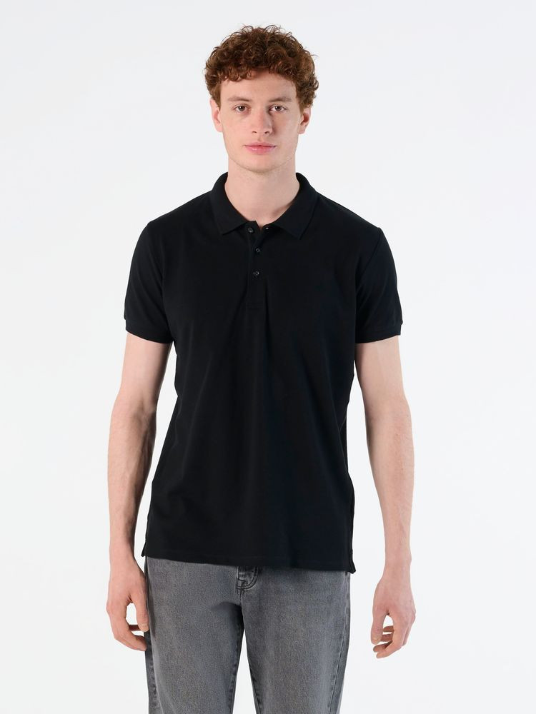 Плотная рубашка поло с эластаном. Лейбл производителя в боковом шве изнутри, в шве горловины - только бирка с размером, что позволяет вам нанести свой логотип.