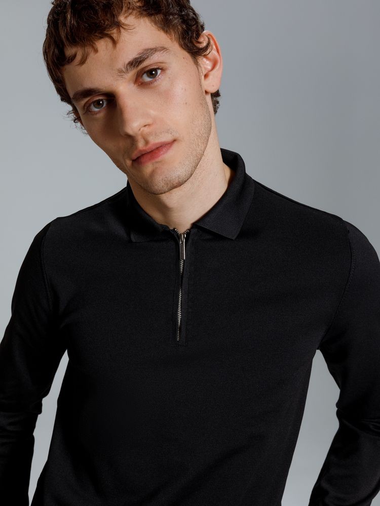 Мужская рубашка поло с длинным рукавом прямого силуэта.