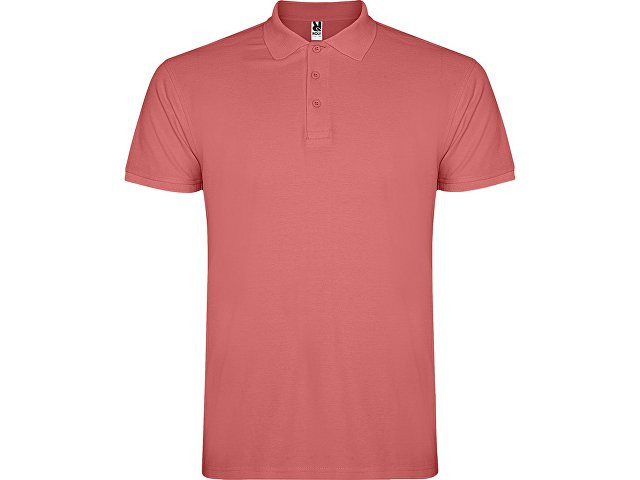 Поло с коротким рукавом, воротник и манжеты из риба 1х1, отделка горловины внутри тесьмой. Планка застегивается на 3 пуговицы. Разрезы в боковых швах. В ассортименте также представлены аналогичная женская модель "Star".