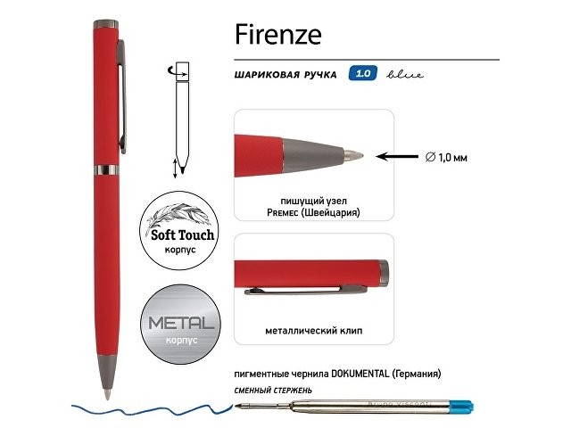 Ручка "Firenze" шариковая автоматическая софт-тач, красная