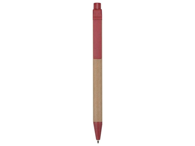 Шариковая ручка с нажимным механизмом. Удобный корпус сделан из переработанного картона. Клип, кнопка и носик ручки на 50% состоят из пшеничной соломы, на 50% — из переработанного пластика. Настоящая находка для тех, кто предпочитает использовать изделия из биоразлагаемых материалов и заботится о сохранности окружающей среды.