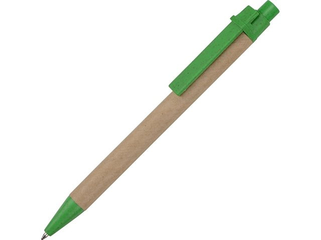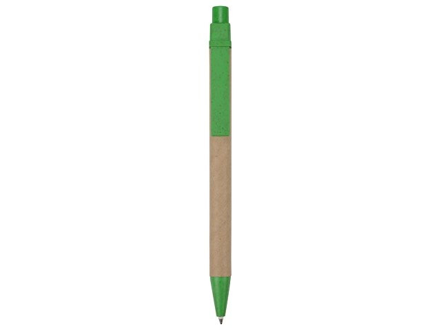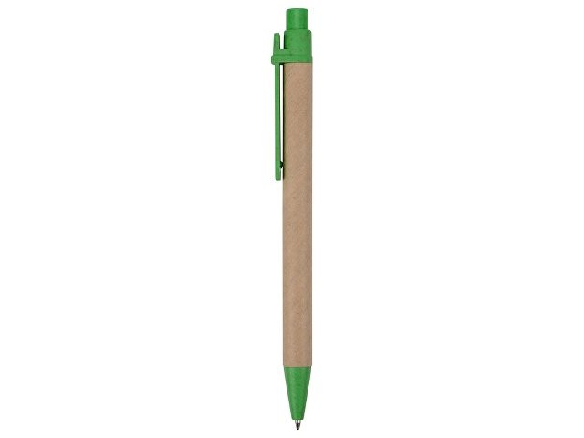Шариковая ручка с нажимным механизмом. Удобный корпус сделан из переработанного картона. Клип, кнопка и носик ручки на 50% состоят из пшеничной соломы, на 50% — из переработанного пластика. Настоящая находка для тех, кто предпочитает использовать изделия из биоразлагаемых материалов и заботится о сохранности окружающей среды.