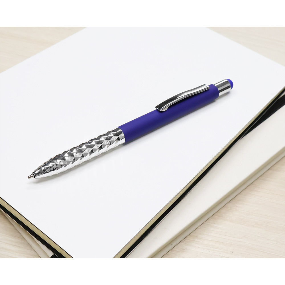 Ручка Party выделяется волнистой текстурой поверхности в области хвата. Это не только придаёт ей игривый оригинальный вид, но и подарит владельцу приятные тактильные ощущения. Эта часть ручки сделана из пластика. Верхняя часть ручки сделана из металла и выполнена в софт-тач. Чернила синего цвета, толщина письма 1,0мм, стержень типа Паркер — это гарантия красивой линии письма и удобства пользования.