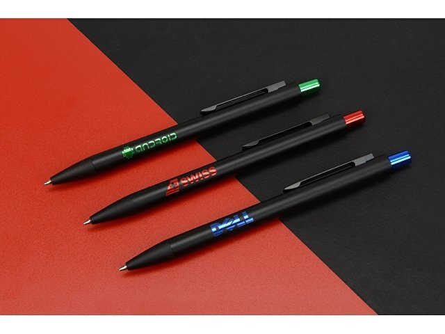 Отличная черная ручка будет сиять в руках ваших клиентов. Секрет ручки в цветном зеркальном слое, который вскрывается в цвет кнопки.
